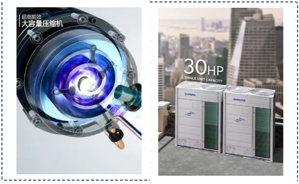 面對(duì)龐大的中央空調(diào)使用需求,三星中央空調(diào)為項(xiàng)目配備總規(guī)模2390HP的產(chǎn)品,以堅(jiān)實(shí)技術(shù)實(shí)力,助力園區(qū)發(fā)展。三星中央空調(diào)高壓腔氣液增焓渦旋式變頻直流壓縮機(jī)采用線性變壁厚渦旋盤設(shè)計(jì),增加吸氣空間,吸入更多冷媒同時(shí)增強(qiáng)排氣部位的強(qiáng)度保持系統(tǒng)穩(wěn)定,提升排氣量,有了它的加持,整個(gè)空調(diào)系統(tǒng)具備穩(wěn)定可靠、高效節(jié)能等多項(xiàng)特點(diǎn),可應(yīng)用于機(jī)場、軌道交通、酒店、商業(yè)等多種建筑領(lǐng)域。強(qiáng)勁的制熱功能,一直都是三星中央空調(diào)的性能亮點(diǎn),經(jīng)過技術(shù)不斷的升級(jí),推出高效的氣液增焓技術(shù)。