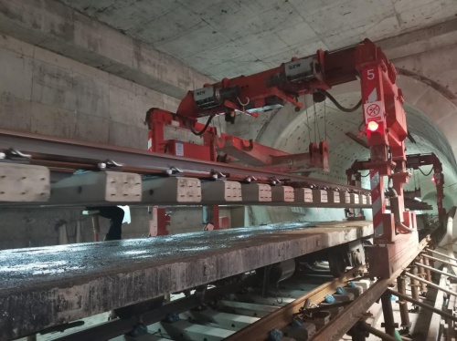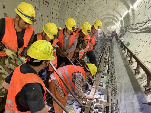 “自進場以來,項目部先后集結(jié)500余人,投入鋪軌機23臺、軌道車7臺,焊軌機組2組,于5月19日實現(xiàn)海底軌道雙線貫通目標,期間項目部創(chuàng)造了單日鋼軌焊接780米、單日整體道床澆筑482米的高產(chǎn)成績。另外,項目部還投入使用了新能源鋪軌機、移動式鋼軌中頻正火車等新工裝,在提高施工效率的同時,踐行了綠色環(huán)保施工理念,為‘雙碳’達標作出了一定的貢獻。”中鐵一局項目負責人賀建鋒介紹道。