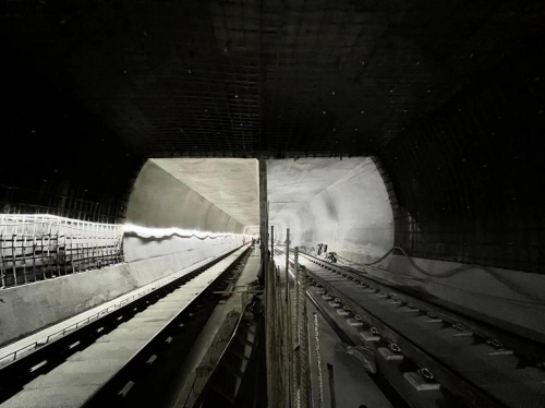 5月19日,在大連地鐵五號線正線海底大盾構(gòu)段火車站站-梭魚灣南站區(qū)間,由中國中鐵一局員工操作的新能源鋪軌機將最后一節(jié)鋼軌鋪設完畢,標志著世界首例海域巖溶地層大直徑盾構(gòu)隧道大連地鐵五號線海底隧道鋪軌雙線貫通,為全線軌道貫通奠定了堅實的基礎。