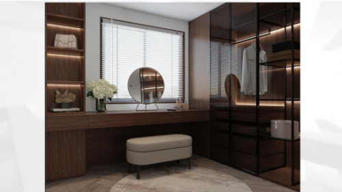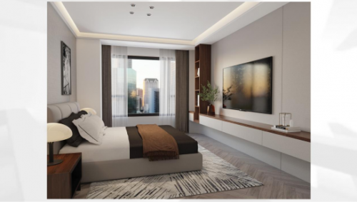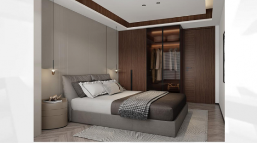 沒有人可以拒絕帶有獨立衣帽間的主臥,利用拼花地板與棕色點綴,打造獨特的東方神韻,只需一點燈光的輔助,隨意軟裝的搭配,就能讓慵懶的生活空間充滿精致感。