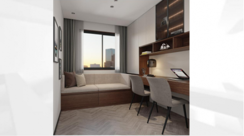 作為處理工作與溝通交流的獨立空間,小書房也同樣以現代棕為主要色彩,配合大面積的留白,營造舒適又干練的辦公空間。