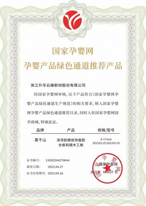 今年4月,莫干山豆茵板因符合《國(guó)家孕嬰網(wǎng)孕嬰產(chǎn)品綠色通道生產(chǎn)規(guī)范》和國(guó)家孕嬰網(wǎng)《托育與孕嬰居所環(huán)境安全防控規(guī)范》(Q/GJYY111.1-2020)的標(biāo)準(zhǔn)要求,被正式納入國(guó)家孕嬰產(chǎn)品綠色通道推薦目錄,同時(shí)獲得了“國(guó)家孕嬰網(wǎng)入網(wǎng)推薦證書”。