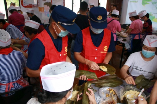 談笑間,熱氣騰騰的粽子終于出鍋了,濃濃的香氣撲鼻而來,一名消防員迫不及待地咬了一口剛煮好的粽子高興地說: “這粽子,有媽媽的味道!和社區里的阿姨一起包粽子,讓我有一種在家的溫馨感。”社區吳阿姨則笑著說:“消防員為我們老百姓的生命財產安全保駕護航,今天能和遠離家鄉的消防員一起包粽子度佳節,我挺開心的,也特別自豪。”