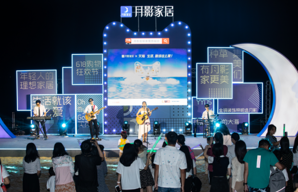 月影作為天貓燈飾頭部商家,618期間攜手天貓在華潤小徑灣的沙灘上打造了一場“世外桃源小燈泡”快閃活動,讓年輕消費者深入感受月影品牌的年輕態以及產品的顏值、品質。音樂會、沙發趴、互動打卡三part合一的快閃活動,用年輕人的方式進行溝通。值得關注的是沙發趴是用落地燈、休閑椅打造出獨特的觀眾席,這種把家居生活場景帶入到海邊沙灘上,讓人群直接感受體驗,需要品牌有足夠的實力,對產品有足夠的自信。