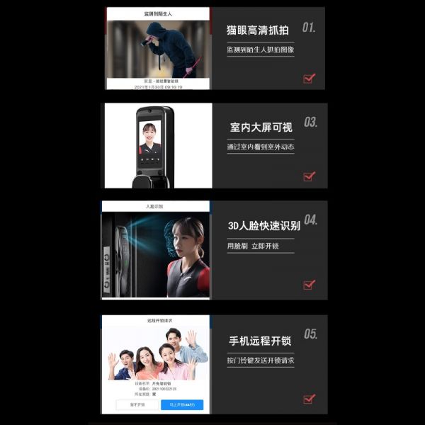 幸福生活,從進門開始。德鎧曼智能鎖讓你在回家的那一刻就感受到智能化生活帶來的便捷,無論是在寒冷的冬天,亦或是炎炎夏日里,都能快速開鎖,輕松進門。細微之處,盡享幸福,智能鏈接美好生活。