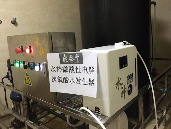 鼎泰豐中央廚房選用了水神HD-240L次氯酸水發(fā)生器,安裝在水池邊,配合電解液使用,可以源源不斷地即時制取殺菌率99.999%的水神消毒液使用。對,沒錯,是即時制取。如果說,在內蒙古打開水龍頭就是牛奶有點夸張,那打開水龍頭就是消毒液,這一點早已在鼎泰豐成功實現(xiàn)。