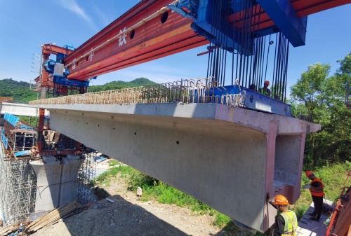 “箱梁架設(shè)如此順利地完成,運(yùn)架設(shè)備功不可沒(méi),特別是JQXD900架橋機(jī)的使用,相比其他的架橋機(jī)它雖然看起來(lái)‘瘦小’一些,但也正因?yàn)樗灾剌p,對(duì)單線箱梁、支座、墊石、墩身等影響小,可同時(shí)滿足單雙線箱梁架設(shè)施工,運(yùn)行速度均勻,安全可靠,極大提高了施工效率。”架梁施工負(fù)責(zé)人馬廷俊指著JQXD900架橋機(jī)說(shuō)道。