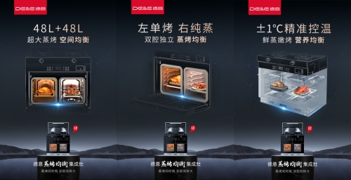 首先,蒸烤空間均衡。不同于市面上蒸烤獨立集成灶“蒸箱大烤箱小”的情況,德意蒸烤均衡集成灶的蒸箱和烤箱的空間同樣大。再有,現在市面上蒸烤獨立集成灶的空間以40L蒸箱+30L烤箱的配置居多,其中烤箱大小能夠達到專業級烤箱烘焙標準——45L-50L的幾乎沒有。而德意蒸烤均衡集成灶以48L蒸箱+48L烤箱的大空間“大”破常規,蒸烤容量行業稱鼎。40cm進深搭配四層擱架設計,可同時容納16個標準餐盤,輕松應對聚會家宴需求。