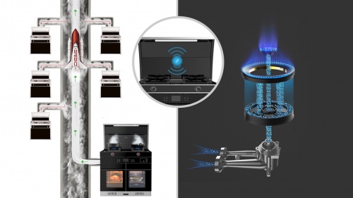 除了上面說的“均衡”新功能,德意蒸烤均衡集成灶也完美地“繼承”了德意三????集成灶“大風壓/大火力/大空間”的優秀基因。900Pa大風壓搭配大吸力,強排油煙不倒灌;5.2kW大火力,創新POWER大火力燃燒系統成就大廚級中式爆炒。而智能煙灶聯動功能將二者默契銜接,灶具點火時,煙機即刻啟動,灶具關閉時,煙機再運行三分鐘排盡余煙后自動關閉。