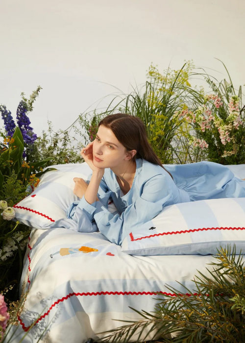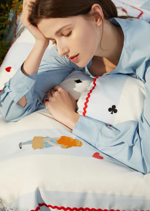 今年,銘都家居攜手V&A博物館跨界合作,結合《愛麗絲漫游奇境》的繪畫故事,以最具代表性的“愛麗絲與柴郡貓”和標志性藍白色系與床品相融合,為這個夏季帶來奇思妙想的快樂與無限可能。