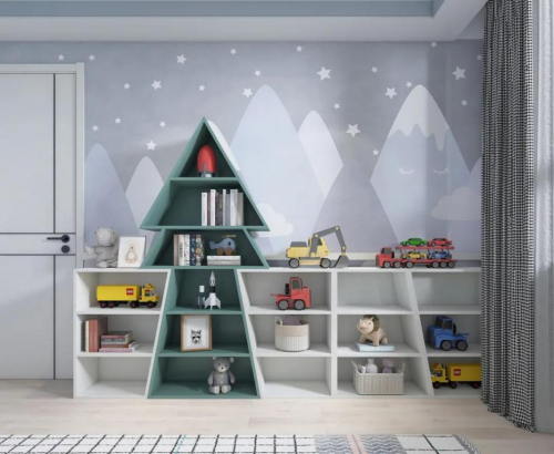 1-6歲的玩耍空間主要用到玩具收納柜、書籍收納柜等。開放式的儲物形式,使得寶貝拿取物品不費(fèi)力。造型方面,萌趣有創(chuàng)意的柜體更能激發(fā)寶貝創(chuàng)造力。
