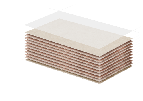 澳思柏恩飾能板嚴選優質桉木木料作為板材內芯原料,確保板材的基礎品質。在制作過程中,澳思柏恩采用獨特的高溫熱壓工藝技術,將旋切木料以縱橫交錯的十字結構進行緊致擠壓,一體成型,讓表面膠合黏連包裹板材內芯,從而提高板材的穩定性和貼壓合格率。