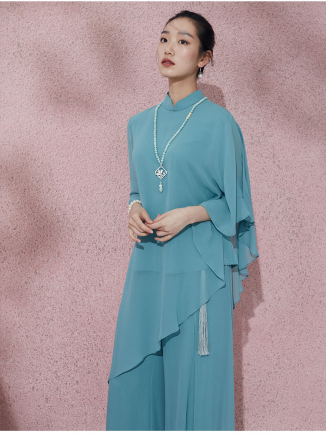 這幕后的功臣是一支曾服務過上海APEC會議各國首腦的國內高水準設計團隊。高級灰、霧霾藍 、橄欖綠,應用的都是各種最熱的流行用色;以原生面料體現服飾質感與特色,細節要更巧妙更精致,款式要更簡潔更大方,花型要更年輕更耐看;江浙一代天花板級別的手工制作者來輔助完成手繪、盤金繡、蘇繡等高級工藝;經驗豐富的生產團隊也力求每件衣服都精美到即便反穿做工也無可挑剔。