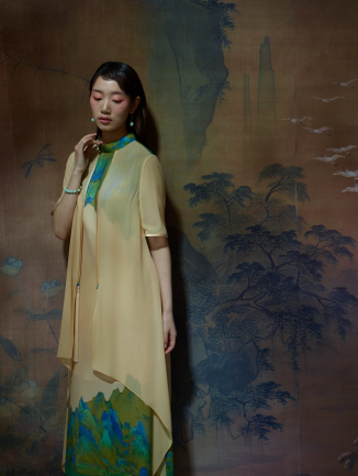 從“山有木兮”的“幽賞興遠”、到“千年風雅”的“楊柳依依”,再到“紫禁韶光”與“千里江山”,大自然草木植物的風雅氣象,傳統十二節氣七十二候令的情境感知以及瑰麗建筑的風華神韻,都深深交融在每件衣服的一針一線,一絲一扣里,甚至每款衣服的名字都讓人沉醉不已。