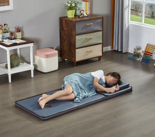 這款午休床墊采用三折疊設(shè)計,長度為一米五或一米八,寬60公分,厚度為50公分,重量輕盈,方便攜帶和收納,適合學(xué)生在學(xué)校午休時使用。
