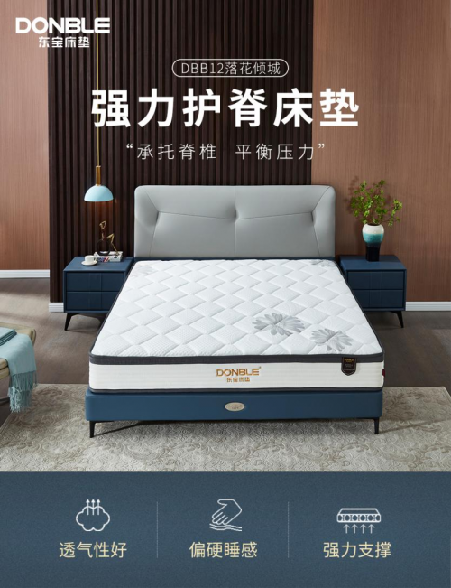 支撐力好的床墊能夠幫助我們翻身更省力。東寶床墊“落花傾城”采用有氧硬質(zhì)棉,平整開(kāi)闊,使人體在睡眠過(guò)程中保持平直狀態(tài),平衡身體壓力,呵護(hù)我們的脊椎健康。