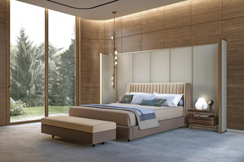 DOMUS床以舒適的比例營造輕盈的視覺美,床頭采用獨特的弧形設計和垂直接縫,點睛之筆是簡約的床頭柜和梳妝臺,金屬與木的碰撞,窺見傳統與創造。