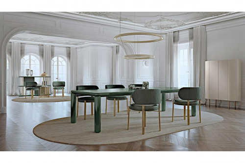 寬大的長餐桌能隨時為餐廳贏得更多矚目,無論是平滑的木質臺面還是大理石鑲嵌,簡潔有力的線條讓它仿若一體成型。啞光金屬桌腿凸顯TURRI一貫的優雅氣質,與同系列餐椅、餐邊柜搭配,如行云流水般絲滑。