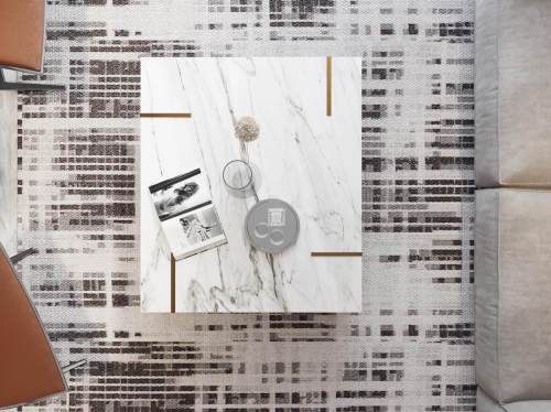 客廳空間——結合自帶的庭院,一樓客廳大面積的白色與棕色系墻板結合,彰顯空間更為通透利落,同色系的墻板融合獨立電梯,弱化突兀感,更進一步提升客廳的整體風格調性。極簡的軟裝適配,以金屬為細節點綴,閑適中的精致,現代風情盡顯。