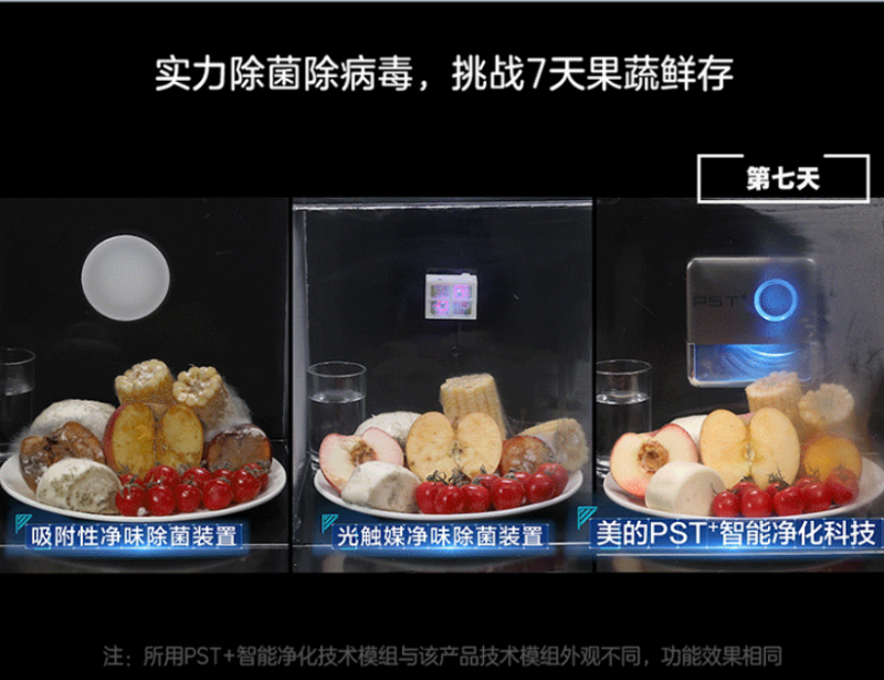 美的冰箱設(shè)置的7天果蔬鮮存挑戰(zhàn)實驗,就是一個敢秀又硬核的對比測試:將三組完全一致的食材,分別放置于不同原理的凈化模塊中,經(jīng)過七天的時間,只有PST+智能凈化科技模塊所在的實驗組,食物基本保持新鮮,而對照組的食物基本上都已經(jīng)發(fā)霉腐敗不堪。這樣的實驗現(xiàn)象說明PST+智能凈化科技能有效延緩食物腐敗,實現(xiàn)長久保鮮,在一眾同類型冰箱中實力最出眾。