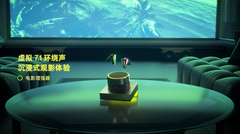 而在電影增強模式下,則可以通過算法,實現以往 TWS 耳機所無法做到的虛擬 7.1 環繞立體聲模擬,使用 2.1 的音源,來模擬 7.1 環繞聲效果。在一定程度上解決了 7.1 環繞立體聲設備價格高昂以及相關資源匱乏的情況。無論是觀影,還是游玩聲效宏大的 3A 游戲大作都更加身臨其境。