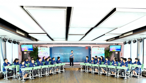 南京市金陵中學附屬初級中學把課堂搬上“長江傳奇”游輪,在長江上進行開學第一課。課程創新地采用“探訪紅色地標+移動課堂”的形式,共分為三個篇章,從文化、歷史、生態、科技、法律等多個維度,向同學們全景展現“一條人文濱江帶,半部金陵發展史。” 圖為南京江豚水生物保護協會副會長兼秘書長姜盟講述《南京江豚的故事》。