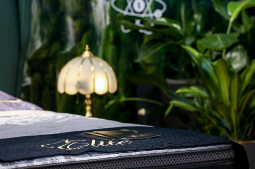 負離子空間”概念展廳內以Elite奢華系列的明星產品 ——“Radiance瑞蒂思”床墊為主打 。“e-ION CRYSTAL?負離子技術”搭配其核心科技“Beautyrest?甜夢獨立袋裝彈簧科技”,疊加三環鋼絲交織而成的“獨立袋裝索纜彈簧系統”,配合“微型貼合獨立袋裝彈簧”的雙層彈簧結構,以及專為Elite奢華系列產品挑選的特級面料等,奢華睡眠體驗盡現。