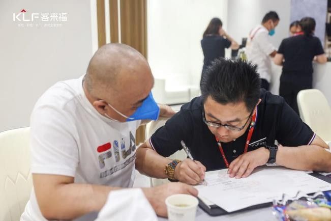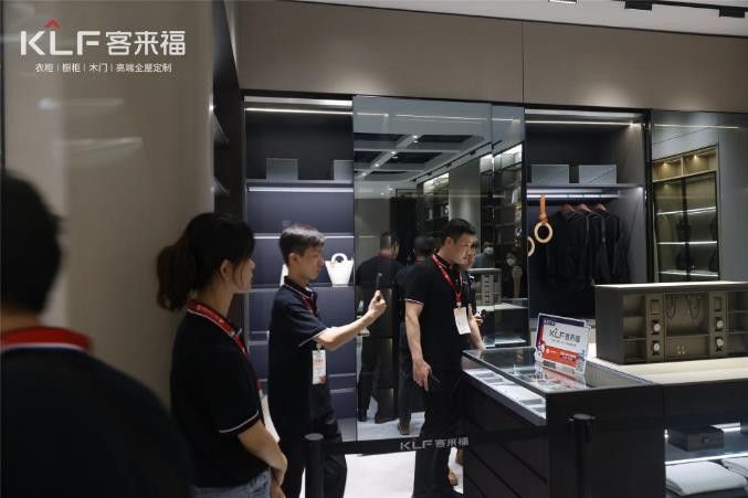 展會期間現(xiàn)場客商親身體驗了客來福·革物產(chǎn)品的精妙絕倫,對于無法來到現(xiàn)場的家人們,可以通過抖音線上客來福全屋定制官方賬號觀看實時直播,觀看客來福專業(yè)家裝設(shè)計師和總監(jiān)為您介紹產(chǎn)品詳情和細(xì)節(jié)。