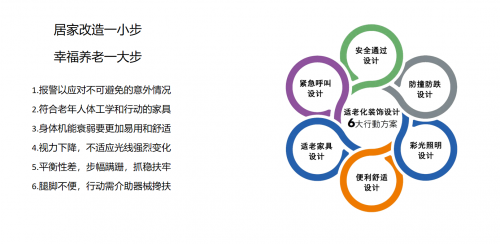 何為適老化改造?就是通過對(duì)老年人居住場(chǎng)所,以及家具配置、器材設(shè)施等作一系列的調(diào)整和修造,使其更加適應(yīng)老年人的使用習(xí)慣和身體情況,改善老年人因生理機(jī)能變化導(dǎo)致的生活不適應(yīng),增強(qiáng)老年人居家生活的安全性和便利性。比方說安裝報(bào)警裝備,應(yīng)對(duì)不可避免的意外情況;配置符合老年人體工學(xué)和行動(dòng)的家具;老年人平衡性差,腿腳不便、步幅蹣跚,在房間合適的位置安裝把手或者扶手供老年人行動(dòng)借力等等。