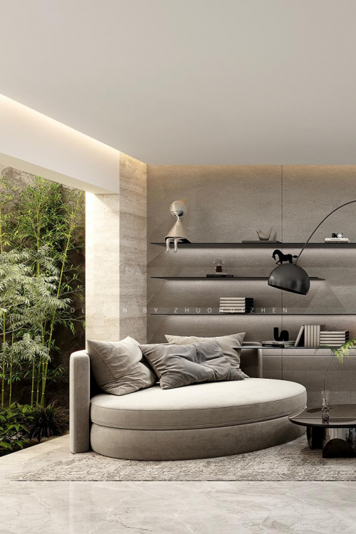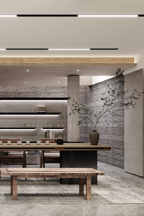 現(xiàn)代與中式風(fēng)格柔軟交織,簡(jiǎn)凈而脫俗的風(fēng)格自然練就。原木、翠綠呈色經(jīng)典,燈光雅致氤氳彌散,對(duì)日常場(chǎng)景的氛圍營(yíng)造使得閱讀與休閑頗有悠然自得的生活境界。