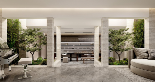 以綠翠為睛,棋相為底。于自然中,將白云院墅山水刻畫(huà)于室內(nèi)建筑中,帶來(lái)奢華定制的空間享受,展現(xiàn)獨(dú)具藝術(shù)未來(lái)感的空間設(shè)計(jì)。