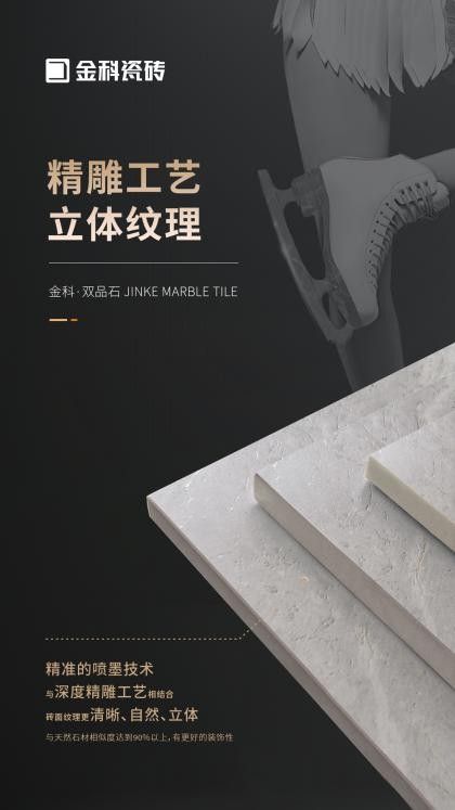 具有雙重優質品質的金科雙品石,既有天然石材的立體層次紋理和溫潤觸感,又具備瓷磚的優等物理性能,推出市場后反響熱烈。