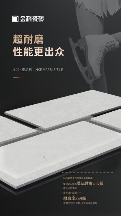 為此,金科瓷磚在發展產品體系的過程中不斷為現有的產品體系注入新鮮血液,強勢加推600×1200mm規格的雙品石,力求通過新產品把“智造品質生活”理念具體化,打造多元化、全面性、均衡化的產品體系。
