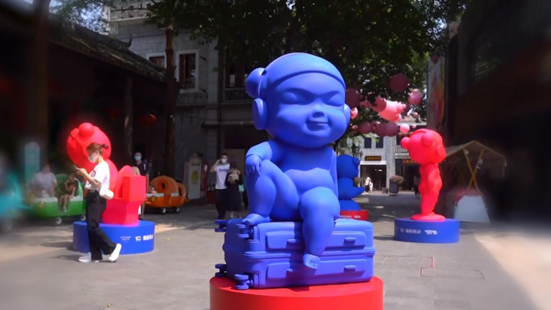 帶著耳機的哪吒置身于古色古香的嶺南天地