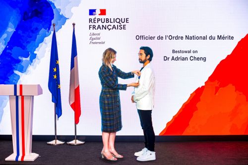 近日,新世界發展有限公司行政總裁、K11創始人、周大福執行董事鄭志剛獲得了“法國國家功績榮譽勛章(Officier de l’Ordre National du Mérite)”的榮譽,由法國駐港澳總領事杜麗緹女士頒發。