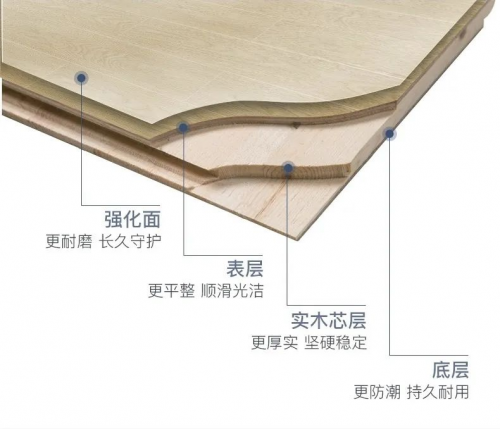 六、適用地熱:基材采用縱橫交錯的網狀疊壓組合,使各層木材的應力相關抵消,極具穩定性;含水率高于普通地板,有效防潮,適合南方的梅雨潮濕環境,同樣適用于北方的地暖地熱環境。