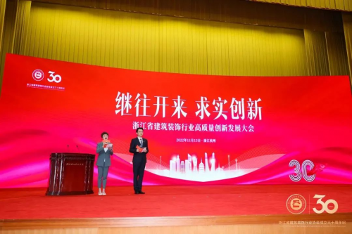 2022年是浙江省建筑裝飾行業協會成立三十周年,改革開放以來,浙江省建筑裝飾業得到了長足的發展,涌現出一批勇擔社會責任、致力于行業發展的榜樣企業與裝飾從業者,為感謝他們拼搏奮斗,積極承擔社會責任,在保障民生共富示范、產教融合脫貧攻堅、疫情防控復工復產、推進行業自律、參與社會治理、參與美麗鄉村建設、踐行綠色發展、G20杭州峰會和亞運裝飾建設等方面作出的積極貢獻,特此表彰。
