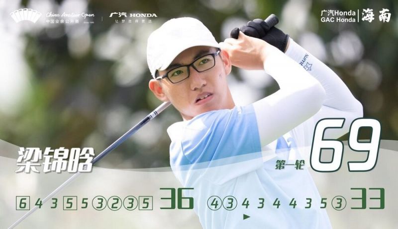 18歲深圳選手梁錦晗單輪抓下6只小鳥吞下3個柏忌,以69桿(-3)領跑男子組,14歲山東選手曾國林70桿(-2)緊隨其后暫居第二;女子組方面,13歲重慶選手彭嚴萱單輪70桿(-2)排在女子組首位,海南本土球員張雋源以71桿(-1)排在單獨第二位。