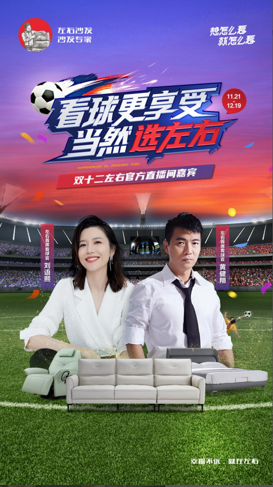 看球更享受,當(dāng)然選左右!除了會(huì)在直播間狂撒福利以外,11月21日-12月19日,左右沙發(fā)全國(guó)線上線下4000多家門店共同大放“價(jià)”,推出多款超值爆款、套餐,以超強(qiáng)力度給你帶來(lái)最實(shí)惠的一站式家居購(gòu)物新體驗(yàn)!