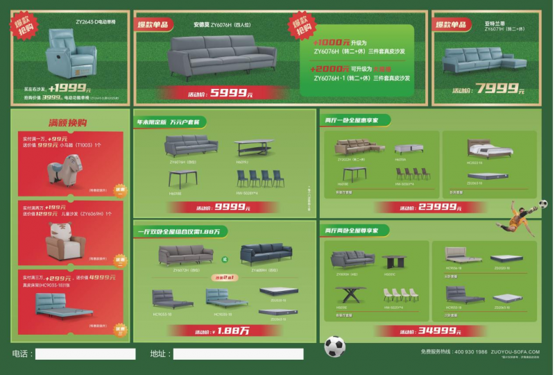11月21日-12月19日,和左右沙發(fā)一起見證傳奇,更多產(chǎn)品優(yōu)惠詳情,歡迎前往線上線下門店咨詢了解!