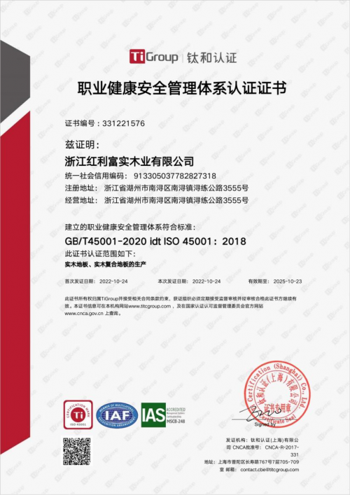 ISO45001職業健康安全管理體系認證證書是由中國質量認證中心(CQC)頒發的一種權威性的第三方認證。紅利獲得職業健康安全管理體系的認證更新,源自其在企業組織架構、管理職責和權限、企業方針政策、管理制度、生產環境等多方面做到了合規與良性化發展。