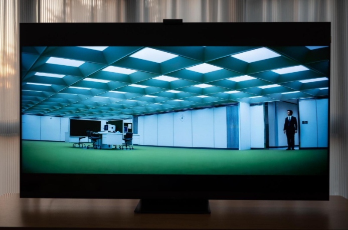 懸疑劇【Severance離職】相信很多人都看過,該劇采用了非常詭異的美術設計跟奇特高光比,來營造整體吊詭的氛圍,復雜的光影場景讓視覺的對比感很明顯,如果亮度、對比度不足,就會有明顯的光暈或者灰斑,不過TCL X11卻進一步加強了這種奇怪的氛圍感,暗光部分足夠純粹且不失細節,高亮部分不反光完美呈現。