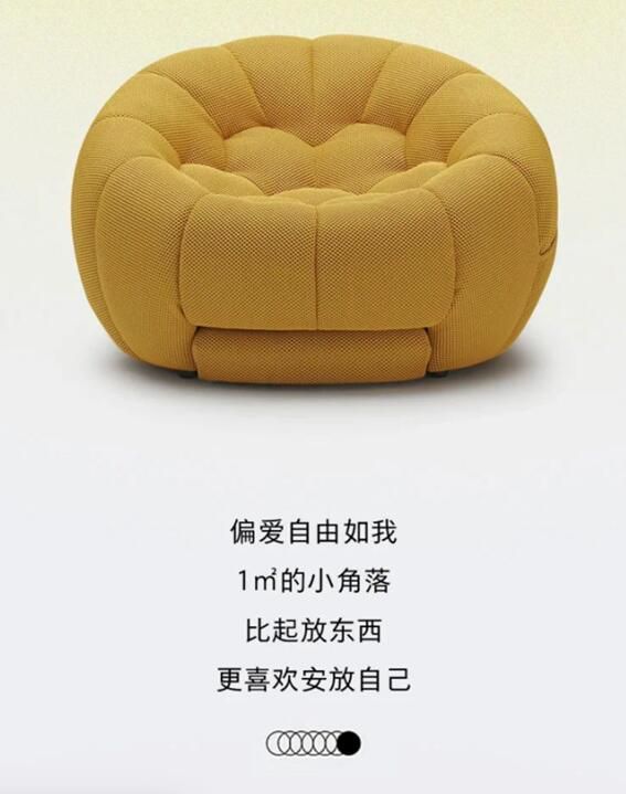 每一個坐上去的人,都會沉醉在那種恰到好處的包裹感之中,再結合其鮮艷而不落俗套的配色,將個性與自我展現的淋漓盡致,恰如其廣告文案所言:1㎡的小角落,比起放東西,更喜歡安放自己。