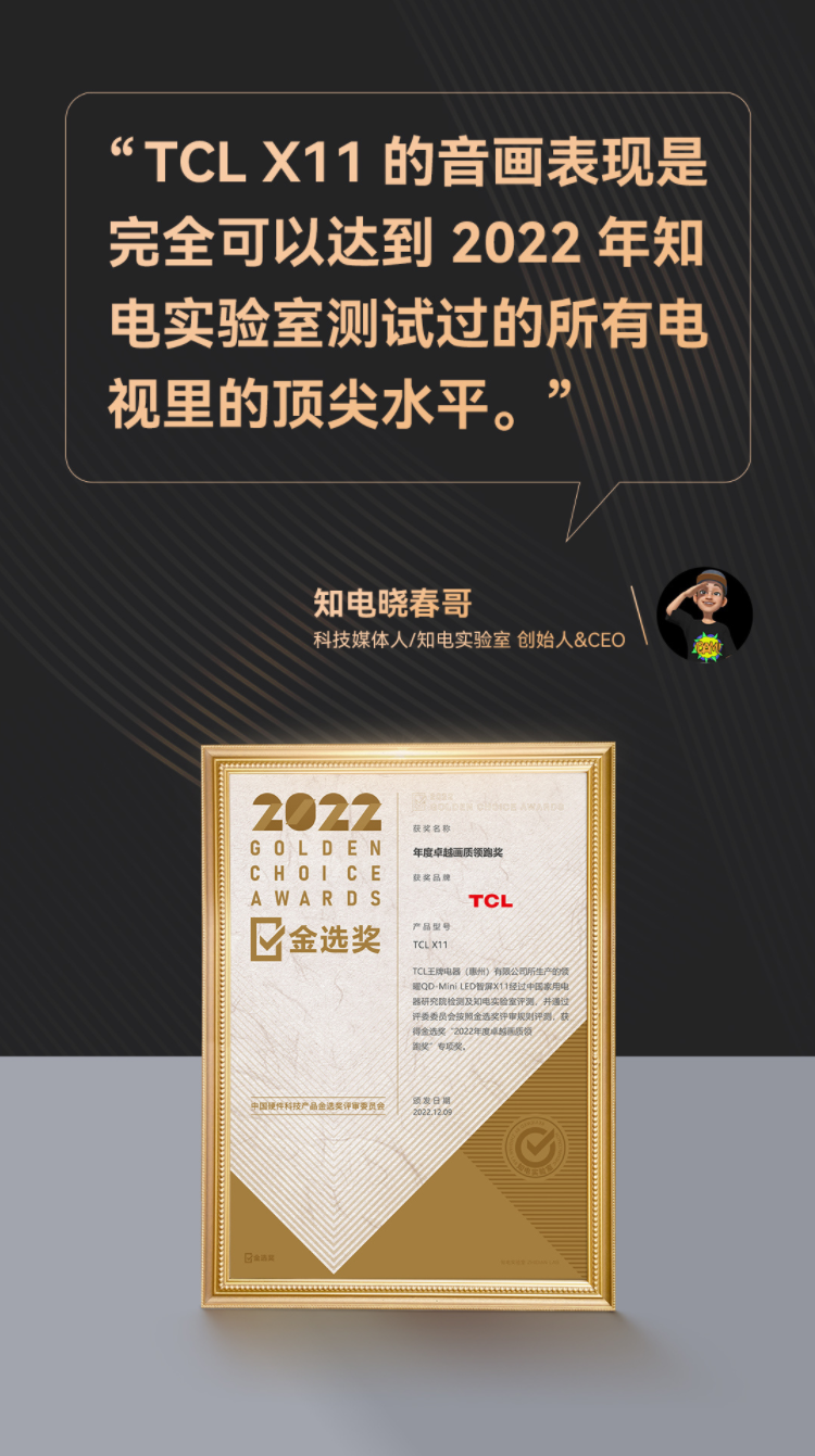 以剛剛榮獲2022年度金選獎(jiǎng)「年度卓越畫質(zhì)領(lǐng)跑獎(jiǎng)」的TCL X11為例,其搭載了自研的QD-Mini LED屏幕顯示技術(shù),選用了旗下面板制造商華星光電的A++蝶翼超顯屏,同時(shí)在此基礎(chǔ)上融入了2304分區(qū)量子點(diǎn)控光、2000nits峰值亮度、1000萬:1的超感知對比度、高達(dá)157%的色域值和德國萊茵TUV低藍(lán)光認(rèn)證,并輔之以5聲道7單元的2.1.2 Hi-Fi音響,60W的超大功率和兩個(gè)獨(dú)立的天空聲道,以及自研的全域AI聲場,在畫質(zhì)與音質(zhì)均做到了行業(yè)天花板水準(zhǔn)。