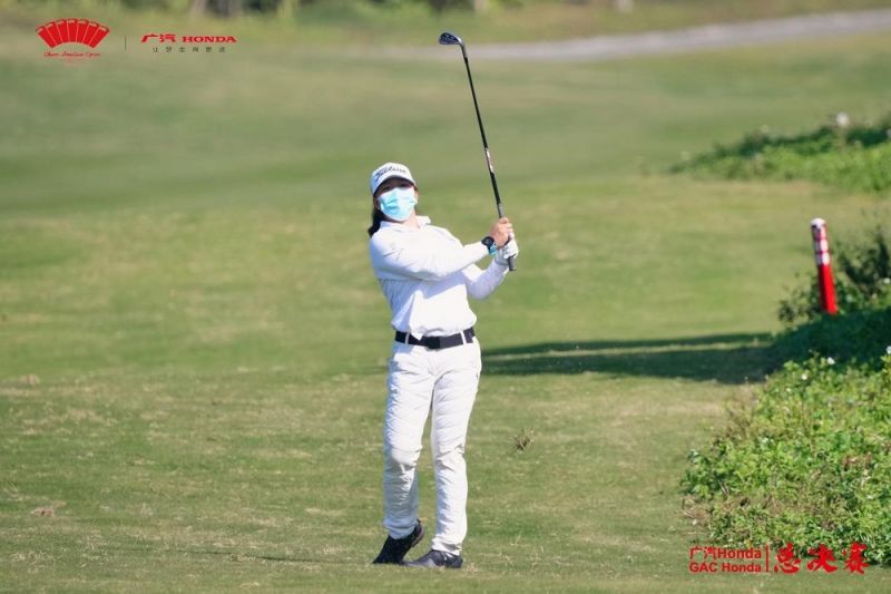 從第10洞出發的羅云溢,開球完美,球停在球道上,留下80碼進攻旗桿的距離,第二桿在小頂風的情況下以一記全揮桿直攻果嶺,球停在距離洞杯5英尺的位置,她一推拿下,抓下小鳥迎來開門紅。接下來,羅云溢穩打穩扎,雖然沒能再次抓下小鳥,但前九后九均打出38桿,讓其名字始終位于領先榜前列。