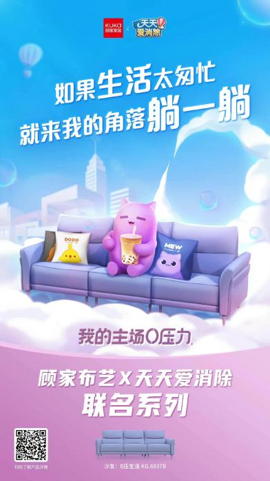 動(dòng)畫視頻短片中,在歡快的鑼鼓聲中,顧家家居的吉祥物顧家牛與旺旺的卡通形象旺仔一起送出聯(lián)名好禮。本次聯(lián)名中,顧家家居和旺旺推出了三款聯(lián)名跨界設(shè)計(jì)產(chǎn)品,分別是以旺旺經(jīng)典產(chǎn)品仙貝、雪餅QQ糖為靈感,專門針對年輕人的家居需求設(shè)計(jì)的掀貝沙發(fā)椅、學(xué)餅桌和懶人神器QQ躺。