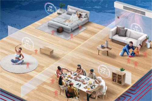 約克VRF新升級智慧雙控型天氟地水中央空調,可以實現溫度雙控,室溫、水溫隨心選,可以選擇控制室溫以達到室內溫暖的效果,也可選擇設定地暖水溫迅速補充室內熱量,防止開窗通風產生的熱量損失。另外,地暖、空調均可實現分區控溫功能,每個人都能獨立設定房間的地暖、空調溫度,滿足全家差異化體驗,家人們彼此溫暖又獨立,從此地暖使用像空調一樣自在。
