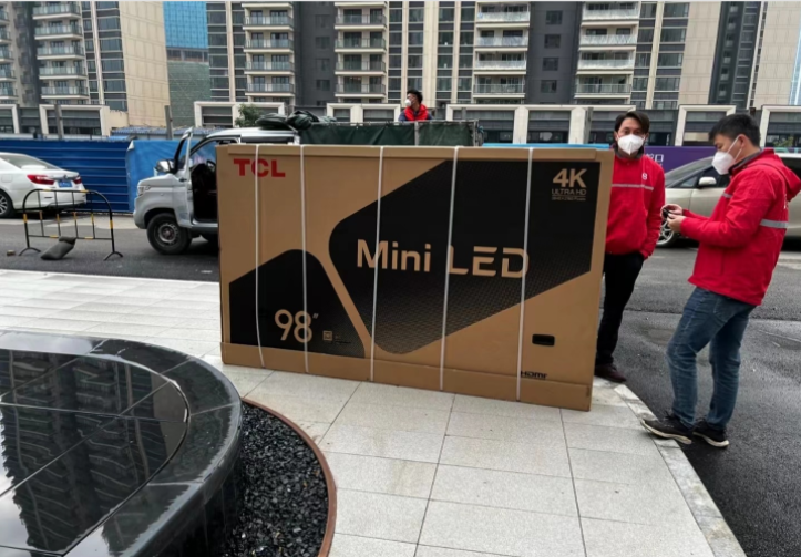 出于好奇心,我問了問售后人員,這電視看著不小啊,怎么進(jìn)電梯、進(jìn)門這么輕松。TCL售后人員說,為了讓98英寸巨幕電視更容易入戶,TCL采用了金屬邊框設(shè)計大幅減少電視尺寸冗余,安裝師傅只要拆掉包裝并做好保護(hù),進(jìn)入96%以上的住宅電梯毫無壓力。