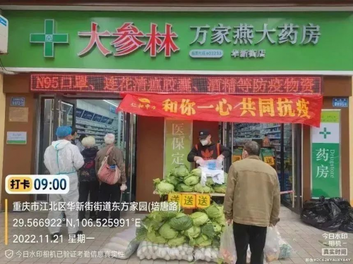 食品也是居民日常必須品,在疫情期間的配送也同樣受到困難。在了解到顧客的切身需求后,大參林重慶營(yíng)運(yùn)區(qū)還額外增加了果蔬配送服務(wù),提供購(gòu)藥購(gòu)菜一條龍服務(wù)。