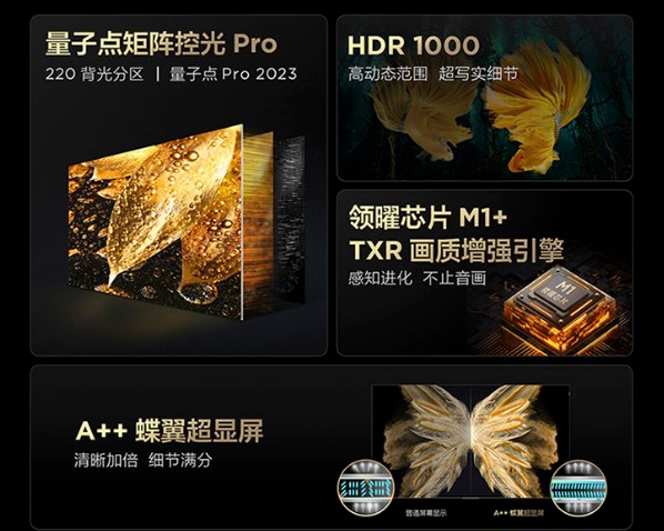 電視最核心的部分無疑是屏幕了,TCL C11G搭載的是A++蝶翼超顯屏,實(shí)現(xiàn)了超高對比度,防眩光、去光暈,以及178-°的可視角度,能夠呈現(xiàn)最真實(shí)的色彩和更豐富的畫面細(xì)節(jié);還搭載了量子點(diǎn)矩陣控光Pro技術(shù),支持最高220分區(qū)的背光分區(qū)、1000萬:1高對比度、157%行業(yè)超高色域值、支持HDR 1000等等,每一項(xiàng)都是業(yè)界高水準(zhǔn),組合在一起顯然更加強(qiáng)悍了。